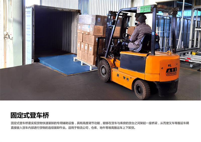 適用場所:產(chǎn)品可根據(jù)用戶的不同需要,廣泛應(yīng)用于碼頭、站臺、倉庫等地。在外形尺寸,承受載荷等方面都可以作特殊設(shè)計。固定式登車橋安裝在貨臺的側(cè)面,與貨臺地面和側(cè)面齊平。固定式登車橋的橋板可上、下傾斜,其外端可高出或低于貨臺平面,使之與車廂等高。橋板的頂端有一翻板,自動搭在車廂邊緣,使貨臺與車廂平穩(wěn)過渡。