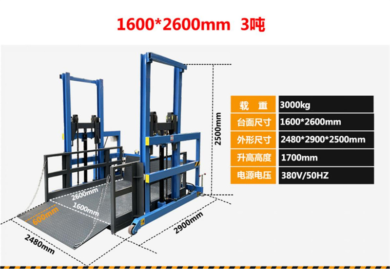 3.卸貨平臺(tái)機(jī)架后部設(shè)有可調(diào)節(jié)鏢絲桿支撐地面,用于裝卸貨作業(yè)時(shí)起到整體固定作用